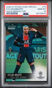 - 2020-21 Stadium Club Chrome UCL Aqua Refractor #75 Kylian Mbappe /199 PSA 10Opens in a new window or tabNew (Other)EUR 185.33lakerfanryan (392) 100%or Best Offer+EUR 26.17 shippingfrom United States