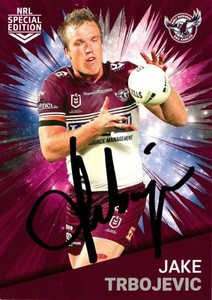 - ✺Signed✺ 2021 MANLY SEA EAGLES NRL Card JAKE TRBOJEVIC RivalryOpens in a new window or tabEUR 9.14Top Rated SellerTop Rated SellerBuy It Nowdaylight2nd (15,761) 100%+EUR 3.65 shippingfrom Australia