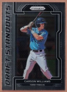 - 2021 Panini Prizm Draft Picks CARSON WILLIAMS Draft Standouts #DS-CW Tampa RaysOpens in a new window or tabPre-OwnedEUR 2.33starfittedcards (1,023) 99.8%Buy It Now+EUR 14.57 shippingfrom United States