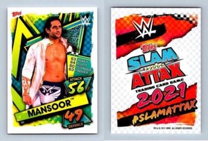 - Mansoor #96 WWE Slam Attax 2021 Topps TCG CardOpens in a new window or tabPre-OwnedEUR 1.16Top Rated SellerTop Rated SellerBuy It Nowbreakoutcards (9,846) 99.9%+EUR 3.79 shippingfrom United Kingdom