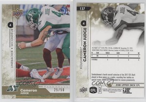 - 2018 Upper Deck CFL Gold /50 Cameron Judge #137Opens in a new window or tabFulfilled by COMC - World’s largest consignment servicePre-Owned