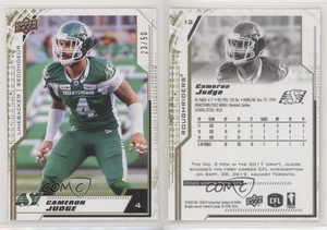 - 2020 Upper Deck CFL Cameron Judge #12Opens in a new window or tabFulfilled by COMC - World’s largest consignment servicePre-Owned