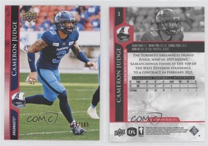 - 2021 Upper Deck CFL Red /165 Cameron Judge #3Opens in a new window or tabFulfilled by COMC - World’s largest consignment service