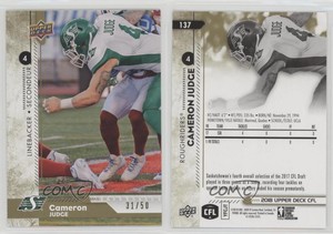 - 2018 Upper Deck CFL Gold /50 Cameron Judge #137Opens in a new window or tabFulfilled by COMC - World’s largest consignment servicePre-Owned