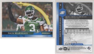 - 2020 Upper Deck CFL Blue Nick Marshall #119Opens in a new window or tabFulfilled by COMC - World’s largest consignment service