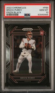 - New Listing2022 Panini Chronicles Prizm Black #pb8 Brock Purdy Rookie PSA 10 Gem Mint 49ersOpens in a new window or tabNew (Other)EUR 166.80Top Rated SellerTop Rated SellerBuy It Nowjodysvintagebaseball (26,852) 99.5%+EUR 25.01 shippingfrom United StatesSponsored