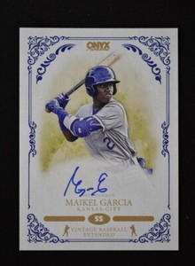 - 2022 Onyx Vintage Extended Baseball Base Auto Blue Ink #OA-MG Maikel Garcia /400Opens in a new window or tabEUR 12.96Top Rated SellerTop Rated SellerWas: Previous PriceEUR 18.52 30% off2bros788 (235,060) 99.5%or Best Offer+EUR 14.75 shippingfrom United StatesSponsored