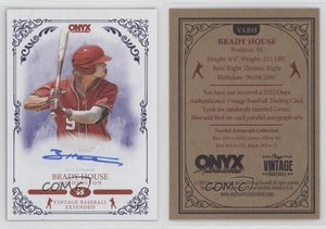 - BRADY HOUSE 2022 ONYX VINTAGE BASEBALL EXTENDED PROSPECT CARDOpens in a new window or tabEUR 7.40sdnvmurray (17,977) 100%Buy It Now+EUR 18.07 shippingfrom United States