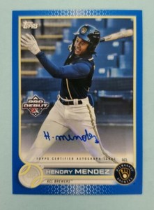 - 2022 TOPPS PRO DEBUT #PD128 HENDRY MENDEZ *BLUE BORDER AUTO #81/150* BREWERSOpens in a new window or tabEUR 9.34Top Rated SellerTop Rated SellerBuy It Nowrkcollectibles (121,792) 99.9%+EUR 16.84 shippingfrom United States