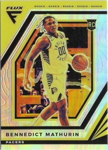 - New Listing2022-23 Panini Flux Bennedict Mathurin Flux Appeal Rookie RC #11 Indiana PacersOpens in a new window or tabPre-OwnedEUR 0.92xjagerx (3,533) 100%0 bids · Time left6d 23h left (Wed, 07:10 PM)+EUR 17.32 shippingfrom United States