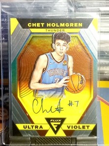 - 2022-23 Panini Flux Chet Holmgren Ultra Violet RC Auto /49Opens in a new window or tabPre-OwnedEUR 296.80scottko44 (77) 100%or Best Offer+EUR 29.52 shippingfrom United States