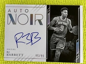 - RJ BARRETT {#/99} New York Knicks 2020 Panini NoirOpens in a new window or tabPre-OwnedEUR 9.27jdbcardsandbooks (891) 100%0 bids · Time left5d left (Mon, 07:16 PM)+EUR 15.73 shippingfrom United States
