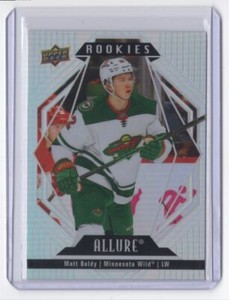 - New Listing2022-23 Upper Deck Allure Hockey Rookies Matt Boldy Minnesota Wild #114Opens in a new window or tabPre-OwnedEUR 1.16ccs2987 (1,888) 100%or Best Offer+EUR 15.58 shippingfrom United States