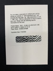- 2022-23 UPPER DECK ALLURE BLUE LINE AUTO JERSEY BOWEN BYRAM /25 #50 REDEMPTIONOpens in a new window or tabPre-OwnedEUR 153.42Top Rated SellerTop Rated Selleror Best Offerrad_cards_and_collectibles (109) 100%Shipping not specifiedfrom Canada