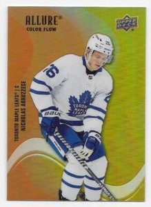 - 2022-23 Allure Color Flow Orange/Yellow Nicholas Abruzzese Maple Leafs C-697Opens in a new window or tabPre-OwnedEUR 2.08ezpzcards (382) 99.7%Was: Previous PriceEUR 2.77 25% offBuy It Now+EUR 15.04 shippingfrom United StatesSponsored