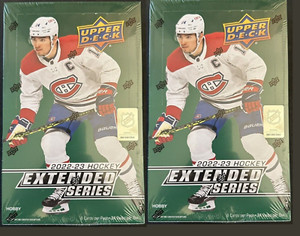 - 2-2022-23 Upper Deck Extended Series Hockey Sealed Hobby Boxes (C)Opens in a new window or tabEUR 48.17Top Rated SellerTop Rated Seller12 bids · Time left1d 21h left (Sat, 08:12 PM)merchandiseliquidations (167,275) 99.4%+EUR 13.22 shippingfrom United States