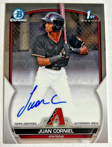 - Juan Corniel 2023 Bowman Chrome 1st Auto - Arizona DiamondbacksOpens in a new window or tabPre-OwnedEUR 3.66tk-sells (114) 100%Buy It Now+EUR 18.95 shippingfrom United States