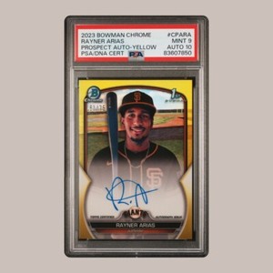 - New Listing2023 Bowman Chrome Rayner Arias Prospect Auto 1st Bowman #CPARA PSA 9 MINTOpens in a new window or tabNew (Other)EUR 136.51grubbsportscards (684) 99.8%or Best Offer+EUR 22.87 shippingfrom United States