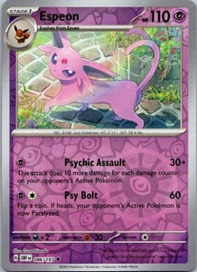 - Pokemon Card Espeon 086/197 Scarlet & Violet Obsidian Flames Reverse HoloOpens in a new window or tabPre-OwnedEUR 1.89+EUR 15.51 shippingfrom United States