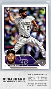 - 2023 Topps Update Base #US162 Jake Bird RC Colorado RockiesOpens in a new window or tabPre-OwnedEUR 0.92Top Rated SellerTop Rated SellerBuy It Nowmrms-sports-cards-and-collectibles (31,075) 100%+EUR 19.04 shippingfrom United StatesSponsored