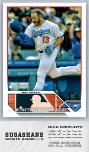 - 2023 Topps Update /499 #US179 Max Power Los Angeles Dodgers Baseball cardOpens in a new window or tabPre-OwnedEUR 1.86jpronschinske (1,546) 99.9%or Best Offer+EUR 14.44 shippingfrom United StatesSponsored