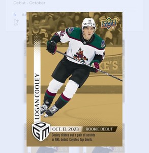 - 2023-24 Upper Deck Game Dated Moments Rookie Debut Logan Cooley #5 /1199 READOpens in a new window or tabPre-OwnedEUR 15.79Top Rated SellerTop Rated Sellereliaminator (2,110) 100%Free International Shippingfrom Canada