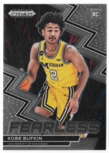 - 2023-24 Prizm Draft Picks Fearless #15 Kobe Bufkin MichiganOpens in a new window or tabPre-OwnedEUR 0.91troutmansales (1,280) 99.7%0 bids · Time left4d 5h left (Sat, 02:20 PM)+EUR 16.29 shippingfrom United States