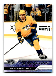 - 2023-24 Upper Deck Young Guns Jake Livingstone Rookie Nashville Predators #245Opens in a new window or tabPre-OwnedEUR 1.84deathbycards (0) 0%Buy It NowShipping not specifiedfrom Afghanistan