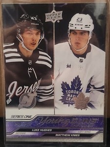 - 2023-24 Upper Deck Young Guns LUKE HUGHES / MATTHEW KNIES 250 New Jersey TorontoOpens in a new window or tabPre-OwnedEUR 6.13Top Rated SellerTop Rated Selleror Best Offercardboardking (8,194) 100%+EUR 16.36 shippingfrom Canada