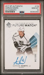 - 2017-18 SP Authentic Adrian Kempe Future Watch Auto /999 RC PSA 10Opens in a new window or tabNew (Other)EUR 103.59treecrew (1,875) 100%26 bids · Time left1h 1m left (Today 06:26 PM)+EUR 18.51 shippingfrom United States