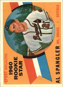 - 1960 Topps Milwaukee Braves Baseball Card #143 Al Spangler RS RC - EXOpens in a new window or tabBurbank Sportscards - World’s Largest SelectionPre-OwnedEUR 2.34Top Rated SellerTop Rated Sellerburbanksportscards (486,471) 99.6%+EUR 9.33 shippingfrom United States
