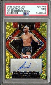 - 2022 Select UFC Alexander Volkanovski Auto Gold Disco Prizm /10 PSA 9 Mint SGAVKOpens in a new window or tabNew (Other)EUR 92.05Top Rated SellerTop Rated Seller14 bids · Time left2d 22h left (Sun, 06:10 PM)+EUR 22.98 shippingfrom United States