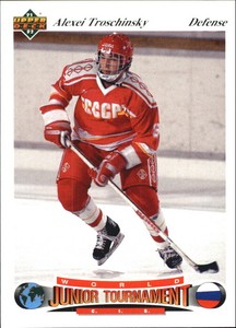 - 1991-1992 Upper Deck WORLD JUNIOR TOURNAMENT #6 ALEXEI TROSCHINSKY SSNSOpens in a new window or tabEUR 0.68asdequebec (7,101) 99.5%or Best Offer+EUR 2.04 shippingfrom Canada