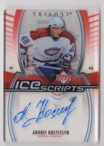 - 2006-07 Upper Deck Trilogy Ice Scripts Andrei Kostitsyn Auto Montreal CanadiensOpens in a new window or tabPre-OwnedEUR 8.51Top Rated SellerTop Rated Sellersebas.meli (13,095) 99.9%+EUR 9.57 shippingfrom CanadaSponsored