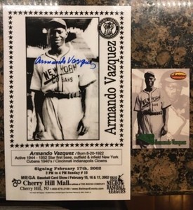 - Negro Leagues Armando Vazquez D Autographed Ron Lewis Series 1 VGOpens in a new window or tabEUR 9.07bruceshowpro (18,880) 100%+EUR 17.96 shippingfrom United States