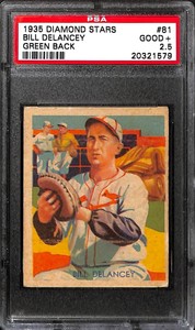 - 1935 DIAMOND STARS #81 BILL DELANCEY GREEN BACK PSA 2.5 20321579Opens in a new window or tabNew (Other)EUR 60.03Top Rated SellerTop Rated Sellersports-cards-forever (20,318) 99.9%+EUR 21.65 shippingfrom United States