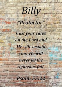 - Billy "Protector" Keepsake Name Meaning Card with Bible VerseOpens in a new window or tabBrand NewEUR 3.73bizziepumpkin (2,336) 98.5%+EUR 1.45 shippingfrom United States