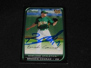 - Brooks Conrad autographed baseball card (Athletics) 2008 Bowman #BDP32 RookieOpens in a new window or tabEUR 16.07autographwarehousecom (6,779) 99.8%+EUR 18.75 shippingfrom United States