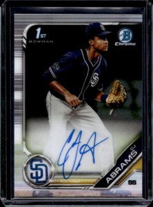 - 2019 Bowman Chrome Draft CJ Abrams 1st Prospect Auto Autograph #CDA-CA PadresOpens in a new window or tabConsign with us! Sign Up & Get Started @ dcsports87-comEUR 11.97dcsports87 (545,977) 99.8%2 bids · Time left3d left (Mon, 06:59 PM)+EUR 20.54 shippingfrom United States