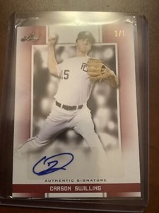 - CARSON SWILLING 2019 LEAF PERFECT GAME "Red" PARALLEL ROOKIE CARD! LTD 45!Opens in a new window or tabEUR 18.86Top Rated SellerTop Rated Sellerdavegriffin23 (46,901) 99.8%+EUR 16.93 shippingfrom United StatesSponsored