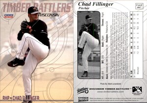 - Chad Fillinger 2005 Choice Wisconsin Timber Rattlers #07 Card *AutographDen*Opens in a new window or tabPre-OwnedEUR 2.26Top Rated SellerTop Rated SellerWas: Previous PriceEUR 3.77 40% offautographden (21,354) 100%Shipping not specifiedfrom United States