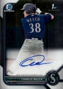 - CHARLIE WELCH 2022 Bowman Chrome 1st ON CARD AUTO / Seattle Mariners CPA-CWOpens in a new window or tabEUR 17.86lioncardco (2,491) 100%+EUR 16.08 shippingfrom United States