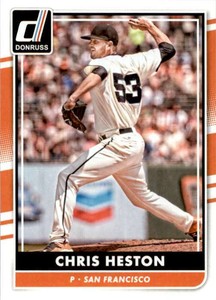 - 2016 Donruss Chris Heston #135 San Francisco GiantsOpens in a new window or tabPre-OwnedEUR 1.86Buy 2, get 2 free with couponcopperstatecards (7,484) 99.9%+EUR 14.54 shippingfrom United StatesSponsored