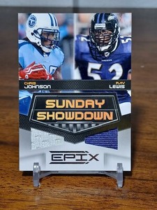- Chris Johnson Ray Lewis 2010 Panini Epix Sunday Showdown Materials Card 106/200Opens in a new window or tabPre-OwnedEUR 14.23chi-towntradingcards (436) 100%+EUR 14.99 shippingfrom United StatesSponsored
