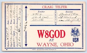 - QSL CB Ham Radio Card W8GOD Craig Telfer Wayne Ohio OH 1932Opens in a new window or tabPre-OwnedEUR 7.85bluelakemercantileco (64) 100%Was: Previous PriceEUR 9.24 15% offBuy It NowShipping not specifiedfrom United States