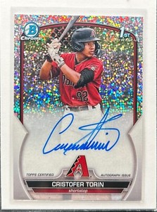 - 2023 Bowman Chrome Cristofer Torin 1st Speckle Refractor Auto #/299 DiamondbacksOpens in a new window or tabConsign with us! Sign Up & Get Started @ dcsports87-comEUR 9.96dcsports87 (546,019) 99.8%9 bids · Time left23h 12m left (Sat, 07:21 PM)+EUR 20.49 shippingfrom United States