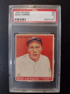 - BB - 1933 Goudey - #9 - Dave Harris - PSA 3 - VGOpens in a new window or tabNew (Other)EUR 154.13trendingart (6,822) 100%Was: Previous PriceEUR 171.25 10% off+EUR 25.14 shippingfrom United States