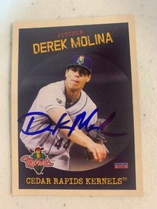 - Derek Molina Signed Card 2018 Cedar Rapids Kernels Got In Person SignedOpens in a new window or tabEUR 9.41612card (2,747) 97.7%+EUR 19.08 shippingfrom United StatesSponsored