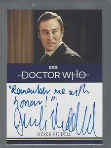 - Derek Riddell Autograph - Signed 3.5x2.5 Doctor Who Trading Card - AFTALOpens in a new window or tabPre-OwnedEUR 11.45Customs services and international tracking providedjh-middlesex (9,558) 99.9%+EUR 13.65 shipping estimatefrom United KingdomSponsored
