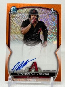 - 2023 Bowman Chrome Deyvison De Los Santos Auto 1/25 Orange Shimmer 1st BowmanOpens in a new window or tabPre-OwnedEUR 371.35sweetspotsportscards (227) 100%+EUR 33.21 shippingfrom United States16 watchersSponsored